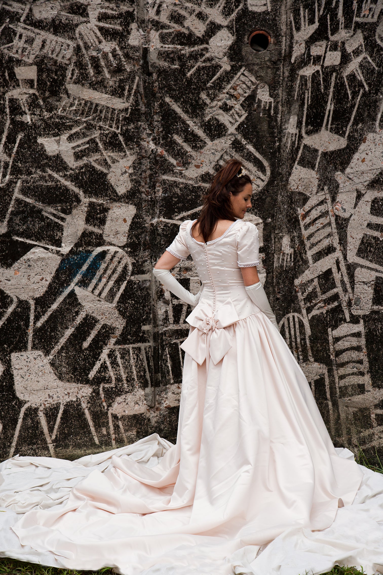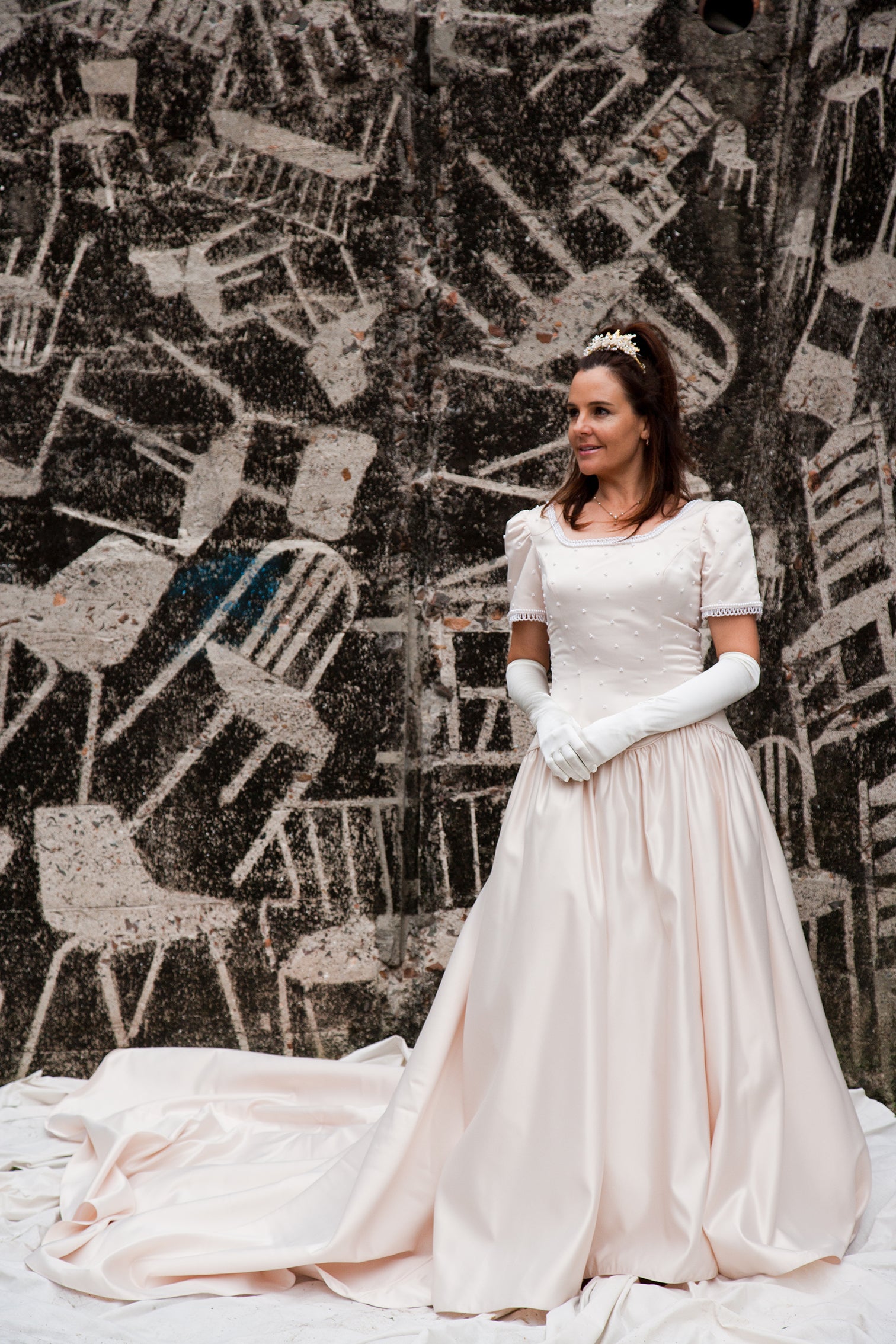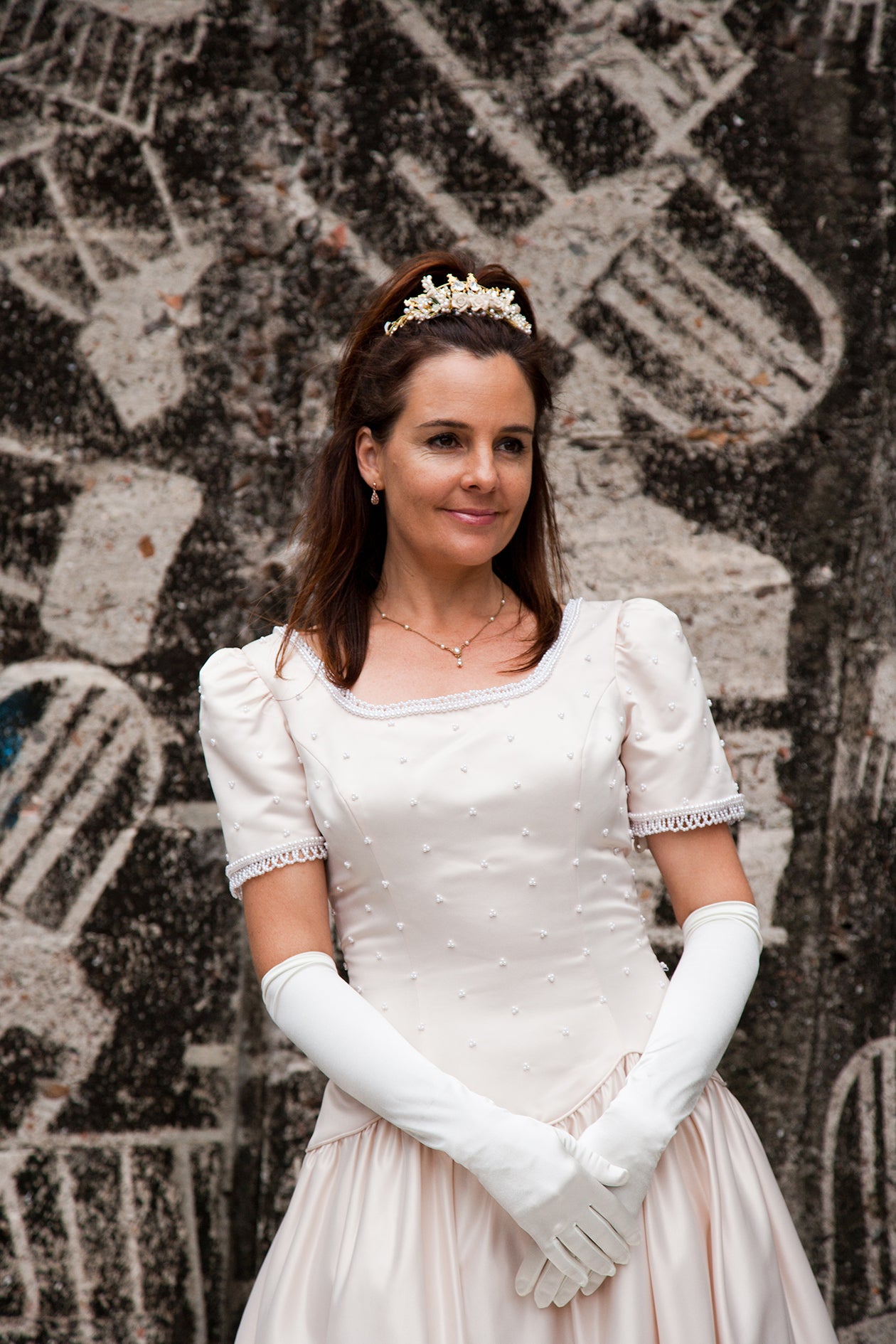 Crafted from elegant satin, the Duchess gown features a flawlessly shaped bodice adorned with carefully curated pearls, complemented by pearldrop-effect sleeve edges for a refined finish. The button-up back is enhanced by a delicate bustle bow, adding a graceful touch to the silhouette. Please note, gloves are sold separately to complete your ensemble.