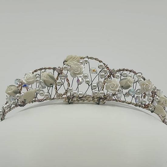 White Flowers Tiara Comb Hair Slide